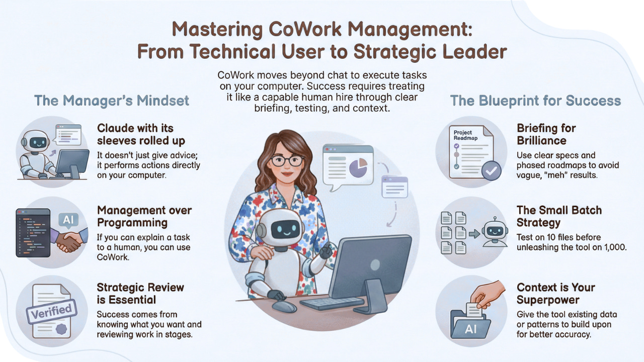 3. You don’t need technical skills. You need management skills. If you can explain a task to a capable human, you can use CoWork. The skills that matter are knowing what you want, anticipating decisions, and reviewing in stages.