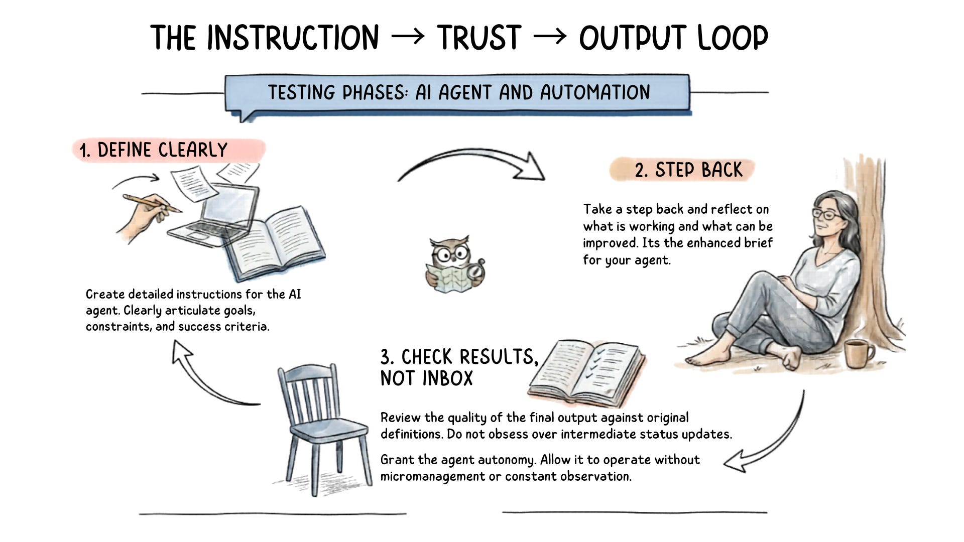 Think about it the same way you would hiring a consultant or a contractor. You bring them in for their expertise. You give them the direction. And then you trust them to do the work — because hovering over their shoulder doesn’t make the output better. It just means you never actually handed off the job.