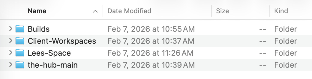 Created a “Lees-Space” folder — All content work (where collaboration makes sense)