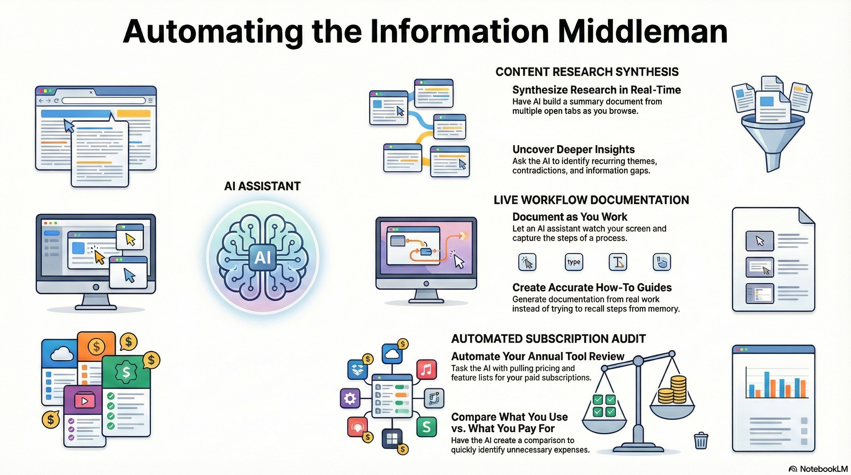 Next time I walk through one, I’ll have Claude watch and capture the steps as I go. Real documentation from real work instead of trying to remember later.Subscription audit. Opening each tool I’m paying for, having Claude pull the pricing page and feature list, then building a comparison of what I’m actually using versus what I’m paying for.
