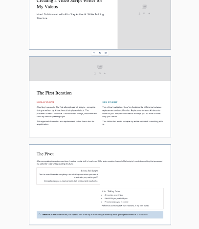 These experiments used AI tools, but I wasn’t trying to automate myself out of the process. The character sheets in Midjourney still needed my eye for what looked right. The Content Repurposer still needs my judgment about what’s worth sharing. The tools amplify. They don’t replace.